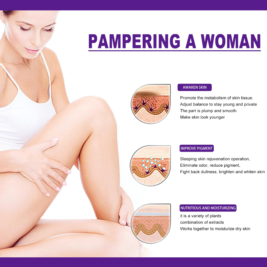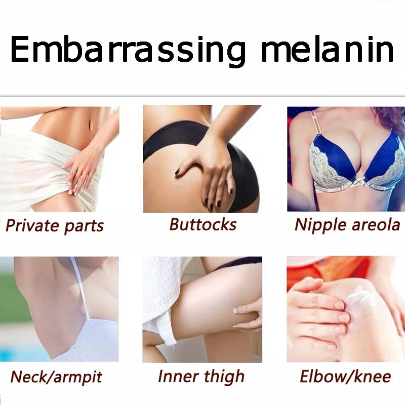 - Product efficacy: 1. Whiten your private parts, dilute melanin, and turn your areolas pink. 2. Dilute melanin, remove melanin from underarms, penetrate deeply, and whiten the whole body. 3. Makes your skin white and translucent, rich and delicate texture gives smooth skin enjoyment. 4. Abundant nutrition penetrates to the bottom of the skin to inhibit and dilute melanin.