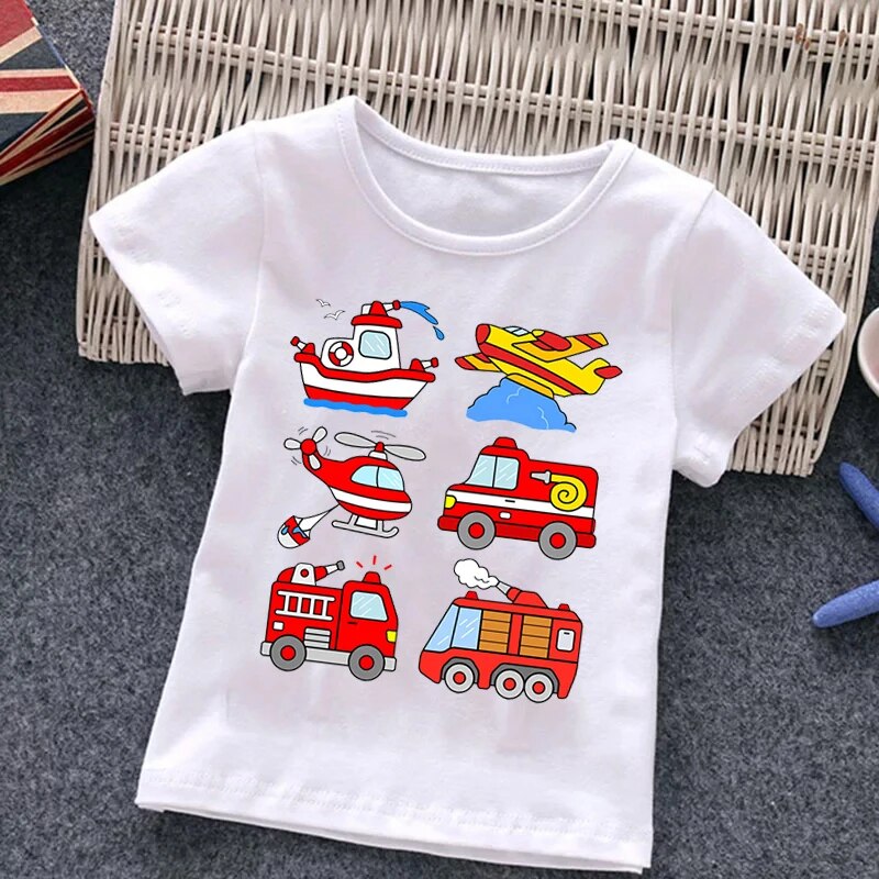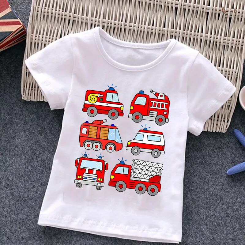 Fire Truck Fireman Print Children's T-shirt New Summer Short Sleeve Kids Tshirt Cartoon Harajuku Tshirt Girl Boy T Shirt Top Tee