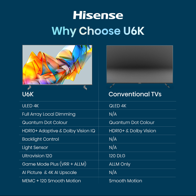 - Available for Hisense TV models 43" and above