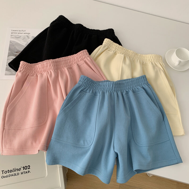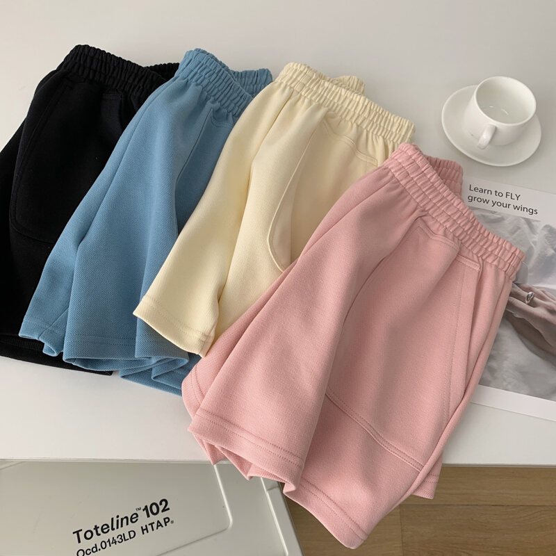 INS Super Popular Summer Home Casual Pure Color Sports Shorts Women's High Waist Slim Looking Loose Student Wide Leg Hot Pants Middle Pants