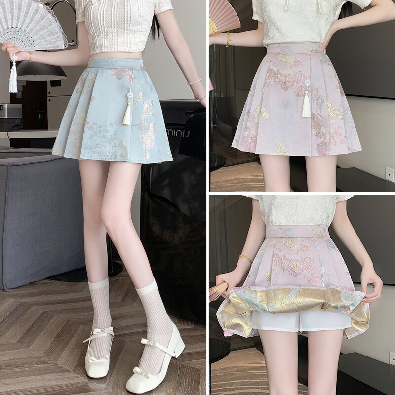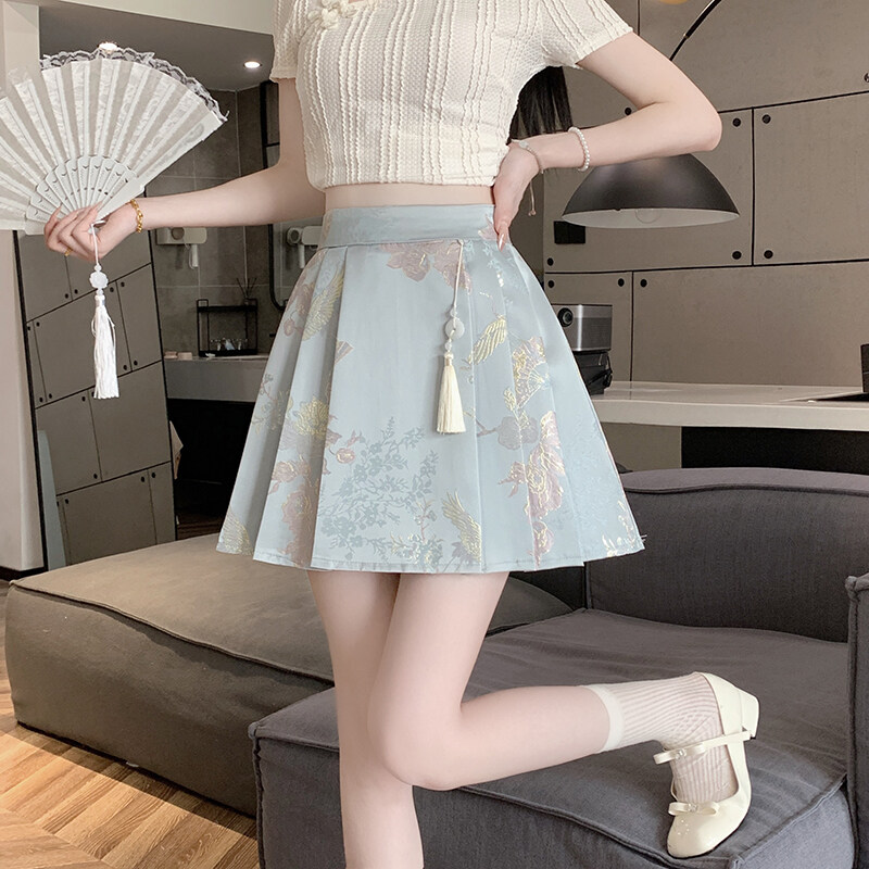 YIGE High end satin jacquard horse face skirt 2024 new Chinese style half skirt for women with small stature and pleated short skirt