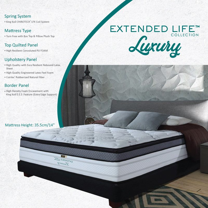King Koil LUXURY Mattress, Extended Life Collection, Available Sizes (King, Queen, Single, Super Single)
