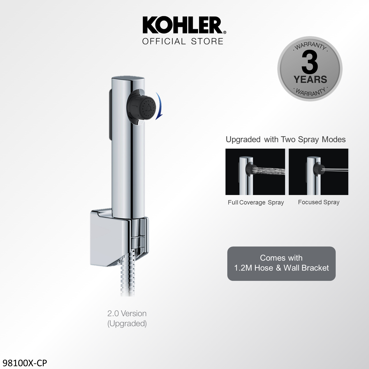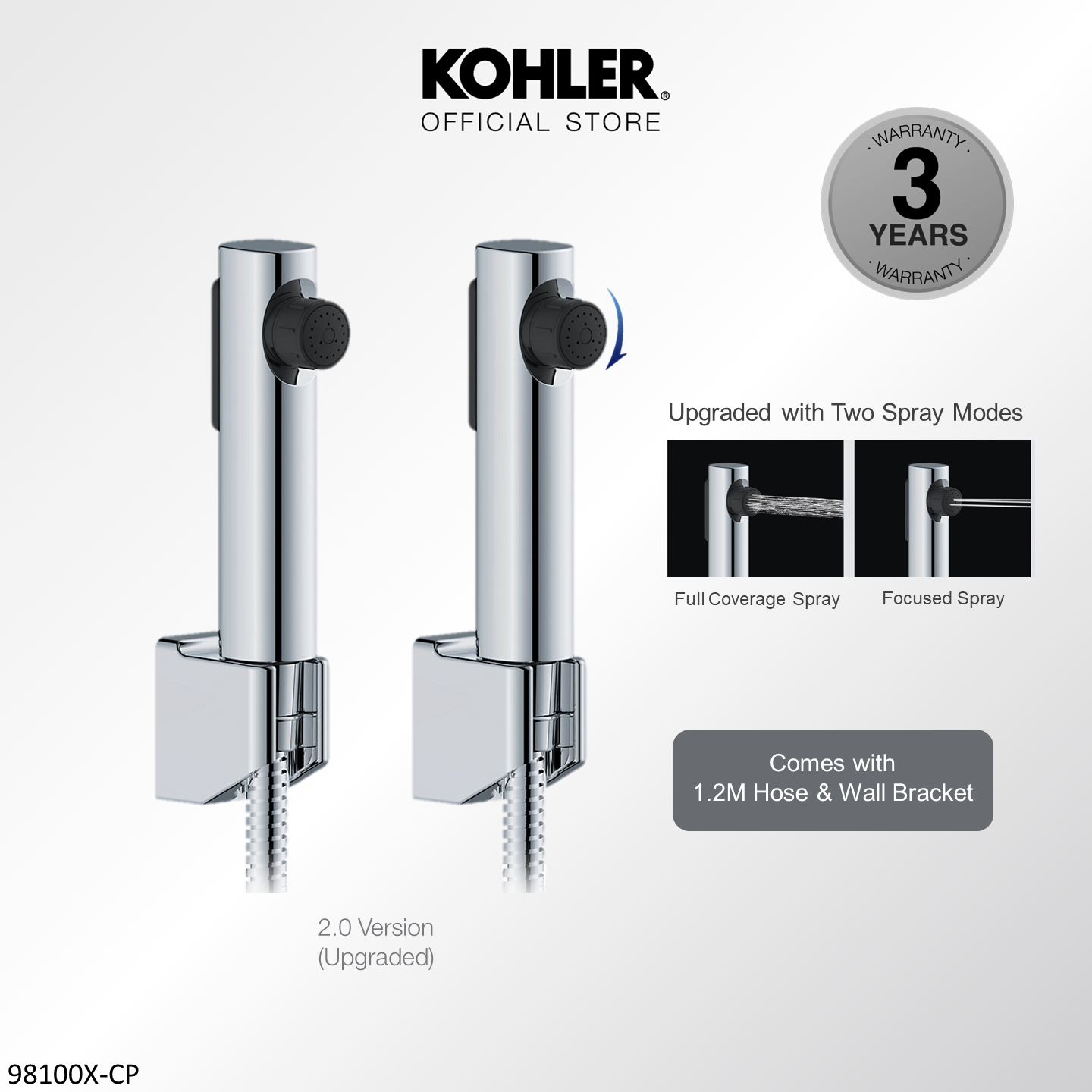 [Upgraded] KOHLER Cuff Hygiene Spray with Wall Bracket & Hose, Anti-bacterial Bidet Spray, Polished Chrome 1.0 K-98100T-B-CP / 2.0 Upgraded K-R29782T-CP