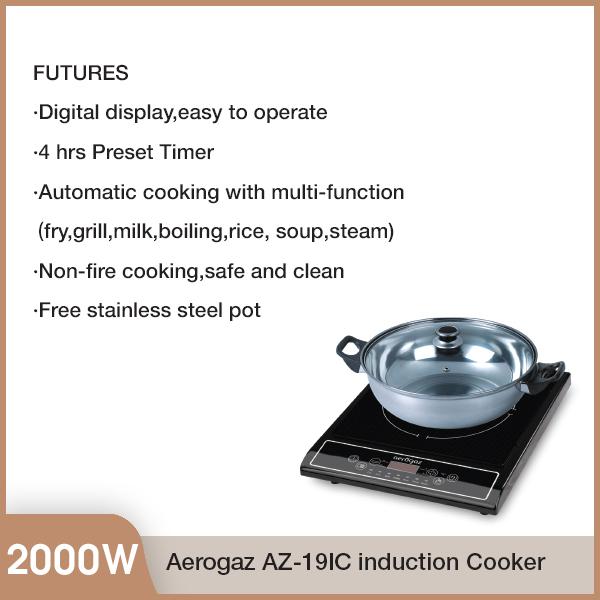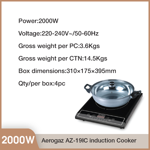 Aerogaz AZ-19IC 2000W induction Cooker With Stainless Steel Pot