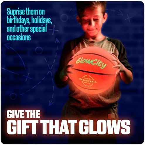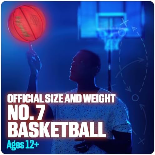 30 HOURS OF GLOW - Perfect for kids, teens and the whole family! This size 7 (29.5") LED basketball features 2 lights that are good for up to 30 hours of nighttime play. IMPACT ACTIVATED - Ready to glow up the night? Our bright red basketball illuminates from the inside with a bounce and automatically shuts off when not in use. THICK SKINNED - Each glowing basketball has a sturdy, water-resistant rubber exterior to help keep the lights safeguarded for indoor and outdoor games. SIMPLE SETUP - This glow up basketball comes with instructions and pre-installed batteries, along with some extras. Simply inflate using a pump to start swishing in the shots. NOTE: Pump not included. FOR ALL AGES - This is a perfect basketball gift for kids of any age. The light up balls make the coolest gifts for teenage boys, making it a blast for everyone.