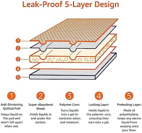 INCLUDES: 100 Regular-size standard-absorbency puppy pee pads; ideal for puppy training, senior dogs, car trips, and more 5-LAYER PROTECTION: Multi-layer construction with quick-dry surface and absorbent core that turns liquid into gel on contact LEAKPROOF: Plastic lining keeps floors safe from damage; plastic border on all 4 sides to prevent overflow BUILT-IN ATTRACTANT: Helps aid in potty training PRODUCT DIMENSIONS: 22 x 22 inches (LxW, overall); 19 x 19 inches (LxW, center pad); 1.65 inch border #1 in Pet Supplies ( ) #1 in