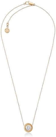 The Michael Kors jewelry collection is designed for timeless appeal. Crafted from hypoallergenic materials like stainless steel and brass with sparkling accents, rich in detail with enduring quality. Perfect as a chic stand-alone piece or for layering, this Michael Kors necklace features a brilliant-cut crystal in a thick, MK logo-engraved bezel pendant setting. The clasp is accented with a drop pendant with the MK logo and an additional crystal. This pendant necklace features gold-tone stainless steel and an adjustable lobster clasp closure. Length 16" + 2" extender Closure: Lobster Clasp Finish: Polished #289,709 in Clothing, Shoes & Jewelry ( ) #3,246 in