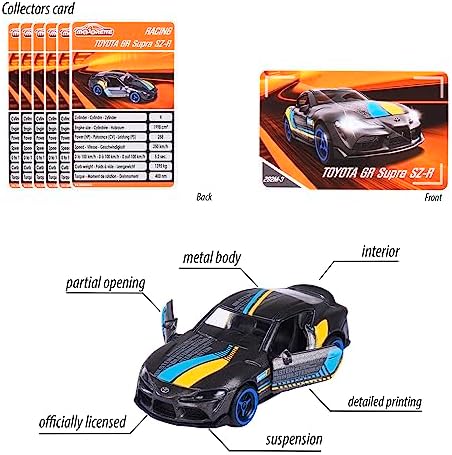Majorette Racing Cars - 1 of 18 Random Toy Cars Highly Detailed 1:64 Scale (7.5cm) with Trading Card Model Car for Kids Ages 3+