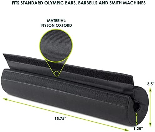 MORE COMFORTABLE SQUATS – Thick 1.25" foam protects shoulders & neck, reducing pain from metal bars during heavy lifts STAYS SECURE – An added flap with Velcro helps wrap the pad tightly to keep it closed & securely in place during workouts VERSATILE & PORTABLE – Light and compact for carrying in gym bags to use with front or back squats, lunges & hip thrusts FITS STANDARD BARS – Fits easily on standard and Olympic barbells, and Smith machines, an ideal size for most users DURABLE FOAM – Sturdy foam offers dense support and holds its shape after regular use for long-term dependability