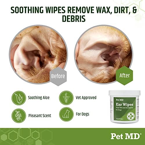 Pet MD - Dog Ear Cleaner Wipes - Otic Cleanser for Dogs to Stop Ear Itching, and Infections with Aloe and Eucalyptus - 100 Count