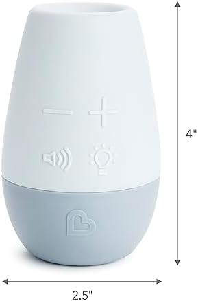 Portable light and sound machine calms little ones with three different sounds - shushing, heartbeat and white noise 3-D icons make it easy to find and toggle sound, volume and light controls in a dark or dim setting Soft night light can glow solid or pulse in sync with the selected sound Auto shut-off timer for 10, 20 and 30 minute increments - 30 minute maximum conserves battery life Battery operated, portable and perfect for on-the-go Requires 2 AA batteries (not included). To change the battery, simply line up battery and lock icon. Makes a great baby shower (or anytime) gift for new parents