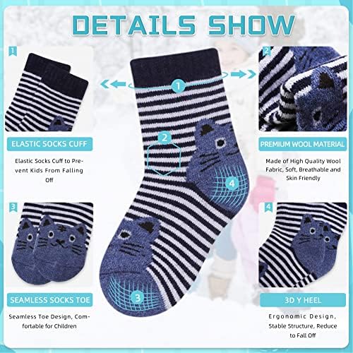 PREMIUM WINTER KIDS SOCKS: These children breathable warm socks are made from 45% Wool, 40% Polyester, 15% Spandex. These high quality materials are NON-TOXIC & ECO, 100% safety for your kids boys, girls or toddlers. SOFT COZY WOOL SOCKS : Eocom kids boy girls crew socks is very soft, comfort and stretchy, Soft fuzzy inner design will keep your baby feet and toes warm on cold weather. Cute animal pattern design socks will make the little kids fall in love. DIFFERENT SIZE FOR CHOOES: These kids cute socks have three size to choice: 1-3 Y, 4-7 Y, 8-12 Y. They are soft and elastic. For your convenience, we have included 6 pairs as a single pack, have many color for choose, fox, deer, cat, dinosaur, dog etc. PERFECT FOR MANY OCCASIONS - Kids baby wool socks perfect for everyday wear, work socks, sports socks, boot socks, hiking socks, running socks, school socks, christmas socks, fleece socks, warmer socks, home socks, thermal socks, indoor socks, heavy socks, boot socks casual socks, flying and travelling and all kinds of athletic activities; Good matching for all sneakers, canvas shoes; Suitable for all seasons' wear. GOOD GIFT IDEA SOCKS: High quality wool socks is a great gift idea.This colorful warm socks is an awesome gift idea that you can choose for your little boy, little girls, daughter, kid, baby, son or friends in their birthdays and anniversaries. Also, it is the most perfect Christmas gift that you can find. #51,361 in Clothing, Shoes & Jewelry ( ) #175 in