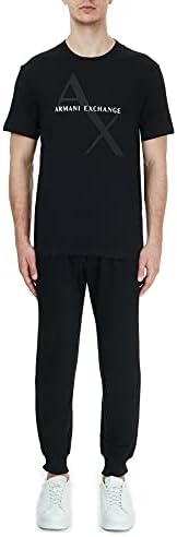 A|X ARMANI EXCHANGE mens Crew Neck Logo Tee T Shirt, Quilted Logo Black, Medium US