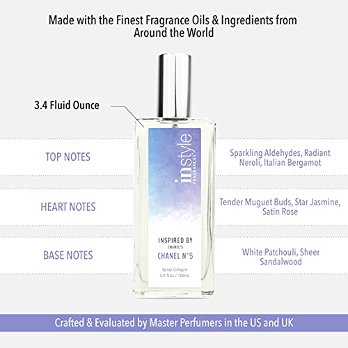 FRAGRANCES YOU WILL LOVE: Our high quality perfumes for women are crafted and evaluated by Master Perfumers in the US & UK. These women’s spray colognes are made with the finest fragrance oils and ingredients from around the world. FRAGRANCE NOTES: Elegance in a bottle. A graceful blend of soft aldehydes, iris petals, and rosebuds wrapped with feminine notes of soft musk and white woods. Perfect for any occasion! CONSCIENTIOUSLY CRAFTED: Instyle Fragrances for women are vegan, paraben free and cruelty free. These vegan perfumes have never been tested on animals so that you can smell good and also feel good about using them! SCENT LONGEVITY: Eau De Toilette (EDT) strength refers to pure fragrance oil concentrations of between 7 and 15% and like all EDTs will last about 3-5 hours or more depending on the scent and your unique body chemistry. DISCLAIMER: Chanel No. 5 is a trademark of Chanel. Instyle Products LLC competes with Chanel No. 5. The women’s perfume does not use Chanel No. 5. fragrance and is not associated in any way with Chanel No. 5 or Chanel.