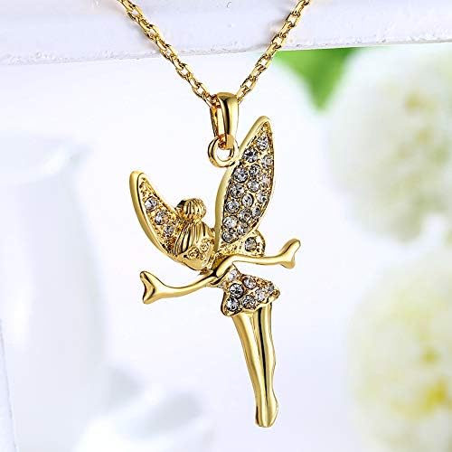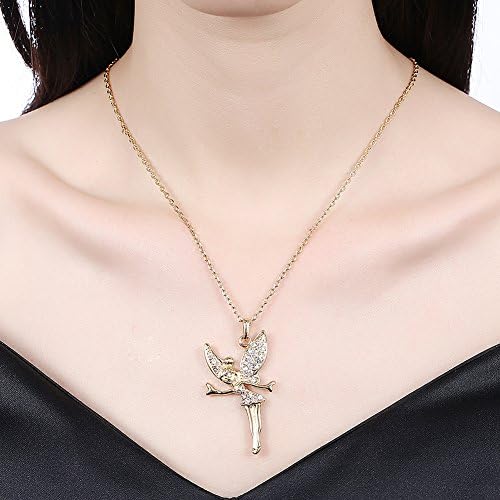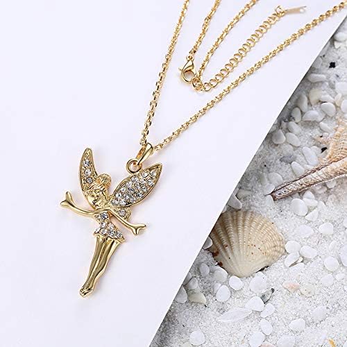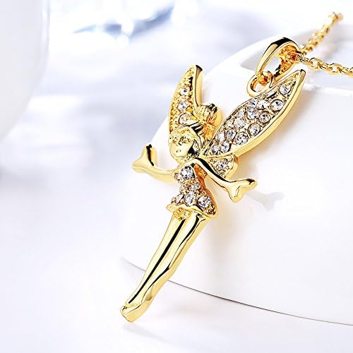 LZD Rose Gold Platinum Plated Necklace Women's Pendant Tinkerbell Wings Fairy AAA Zirconia 20 Inches 2MM Lobster Clasp B333
