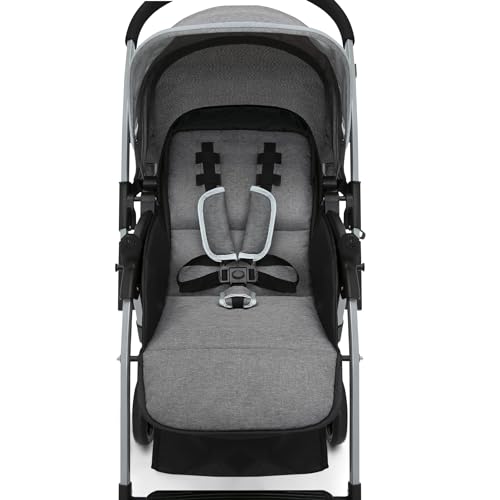 oxford Imported For infants who can sit unassisted up to 50 pounds | Meets Disney size requirements |Reversible handle allows baby to ride parent facing or forward facing | Stroller is also as a travel system when paired w/ compatible car seats (car seat sold separately) Car seat compatibility: This stroller fits the following infant car seats (car seats sold separately): Greco snug ride, click connect 30, 35, 40, evenfall nurture, evenfall embrace.Care & Cleaning: Spot or Wipe Clean Ideal comfort: Extendable European-style canopy with pop out UPF 50+ sun visor; Reclining seat with three positions; Adjustable footrest; Child tray with cup holder swings away for easy ins and outs Makes traveling easy: Stroller includes large storage basket under the frame; Quick and compact fold; Extremely safe: JPMA certified; Five-point safety harness; Reflective piping to ensure you can be seen at night Smooth ride: 7" front swivel lock wheels; 8" shock absorbing back wheels--linked brakes lock both rear wheels by pressing a single pedal; Assembled dimensions: 33.9"L x 20.5"W x 42.9"H; Folded dimensions: 21.3"L x 9.8"W x 31"H; Weight: 20.9 pounds