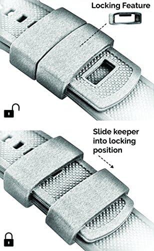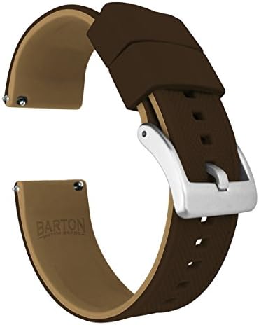 SWAP IN SECONDS: Quick release spring bars allow you to swap bands in seconds to compliment your wardrobe or mix and match with BARTON's other Leather, Canvas and Silicone quick release watch bands to take your timepiece from the gym to the workplace. Simply slide quick release knob with finger as shown in diagram. SELECT PROPER WIDTH: Compatible with any traditional or smart watch that uses 18mm, 19mm, 20mm, 21mm, 22mm, 23mm or 24mm spring bars. Measure watch lug where band and spring bar meet the watch casing. It is important that your watch's lug width is the exact width of the band you select or spring bars will not fit correctly. You can also find the specifications for most watches by searching online. TWO LENGTHS INCLUDED: Each band comes standard with different two lengths of the ‘long side’ of the strap (the side with the holes), assuring a perfect fit for nearly any wrist. Fits wrists 5" to 8" in circumference, but watch geometry may also impact fit. LOCKING FEATURE and OTHER ATTRIBUTES: BARTON’s proprietary locking feature assures that the free end of the strap stays securely in place. Quick release spring bars, durable silicone, solid tang 316L stainless steel buckle, scent free and dust free, 2mm taper from watch head to buckle. SMART WATCH WIDTHS: 22mm - Samsung Gear S3 Frontier, Samsung Gear S3 Classic, Samsung Galaxy Watch, Samsung Galaxy Watch 3, Fossil Gen 5 Carlyle, Fossil Sport :: 20mm - Samsung Galaxy Watch 6, Samsung Galaxy Watch 6 Classic, Samsung Galaxy Watch 5, Samsung Galaxy Watch 5 Pro, Samsung Galaxy Watch 4, Galaxy Watch 4 Classic, Samsung Galaxy Watch 3, Samsung Gear S2 Classic, Samsung Gear Sport, Samsung Galaxy Watch, Samsung Gear Sport, Samsung Galaxy Watch Active, Samsung Galaxy Watch active 2