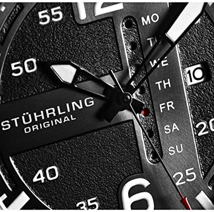 Stuhrling Original Mens Leather Watch -Aviation Watch, Quick-Set Day-Date Leather Band with Steel Rivets,