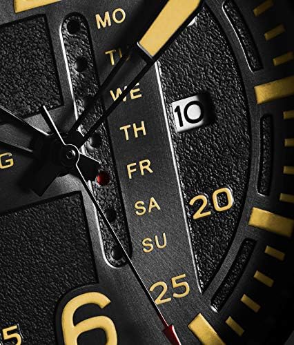 Featuring a commanding and sturdy 43mm case 9mm thick with a stainless steel screw down caseback, this quartz knows how to command the room Made for the dapper aeronaut, an extra large 6 and 12 with a guiding triangle keeps your bearings straight Plongeur meaning diver in French hands paired with adventurous index markers shine brightly through the shatter proof face to tell you time 14 ATM water resistance 100 meters 330 feet gives this Aviator the soul of a diver while embracing its milehigh heritage #189,665 in Clothing, Shoes & Jewelry ( ) #768 in