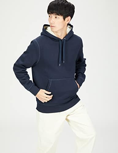 REGULAR FIT: Comfortable, easy fit through the shoulders, chest, and waist BRUSHED FLEECE: Midweight 8.3 oz soft brushed-back cotton-polyester blend fleece for staying cozy and keeping warm. Hood and body lined with cozy sherpa fleece. Sleeves lined with jersey. EVERYDAY CASUAL STYLING: This classic pullover hoodie is a go-to cold weather layer with cozy sherpa lining. Match-back to Amazon Essentials Men's fleece joggers or pair with jeans for everyday on-the-go. DETAILS: Features hood with drawstring and metal grommets, front kangaroo pocket, and ribbing at the hem and cuffs. LENGTH: 28" from side neck on US size M. #2,069 in Our Brands ( ) #25 in #430 in #866 in