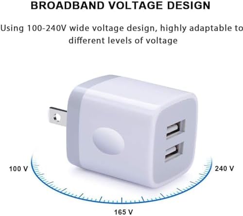 [Efficient Performance] Total output 5V 2.1Amp, when using 1 port, the charging speed is 2.1A, when using 2 ports, the charging speed is 1A for each port. Full charge about 1-2 hours for iPhone and other smartphones. [Universal Compatibility] Compatible with all USB device: iPhone 15/15 Pro/15 Pro Max/15 Plus/14/14 Pro/14 Pro Max/14 Plus/13/13 Mini/13 Pro/13 Pro Max, iPhone 12/12 Mini/12 Pro/12 Pro Max/SE, iPhone 11/11 Pro/XS Max/XR/X/8/7/6/6s, Samsung, Android, Motorola, LG, Nexus, Oneplus, HTC, Nokia and more device. [2 Charging Ports] Dual USB ports allow you charge with two devices, when you need to charge more device at home, house, office, it is convenient and save the space. [Safe & Quality Reliable] Intelligent circuit design protects against short circuiting, over-heating, over-currents, and over-charging. Charging stops when battery is full. [What you get] 5-Pack different colors dual port wall chargers and 2-years w arranty, if there is any problem, please contact with us, we will solve the problem within 24 hours.