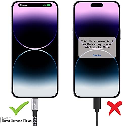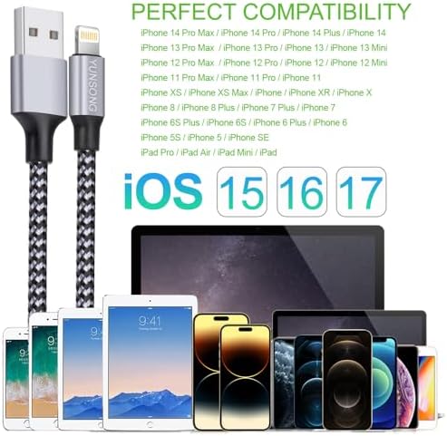 STRONG DESIGN: Covered with braided-nylon jacket. Polished aluminum alloy housing not only pairs perfectly with your iPhone iPad, but also protects against physical stresses. PERFECT LENGTHS: Perfect 6FT extra long phone charger cable free up your charging time, no more being stuck to wall socket, ideal for using at home, in car and office. HIGH-SPEED CHARGING: Ensure a maximum charging speed up to 2.1A, charge faster than most standard cables and work better for speed. HIGH QUALITY: Tested to withstand 8000+ bend cycles, this cable is highly resistant to splitting and breakage. more strong than standard Phone charger cord. COMPATIBLE WITH:iPhone 14, 14 Plus, 14 Pro, 14 Pro Max, 13, 13 Mini, 13 Pro, 13 Pro Max, 12, 12 Mini, 12 Pro, 12 Pro Max, 11, 11 Pro, 11 Pro Max, SE, X, XS, XR, XS Max, 8, 8 Plus, 7, 7 plus, 6s plus, 6s, 6 Plus, 6, 5c, 5s, SE, 5, iPad, Air, Pro, Mini, iPod. If you have any questions, don't hesitate to contact us. our service team will reply you with satisfied solution within 24hours.
