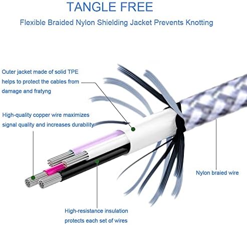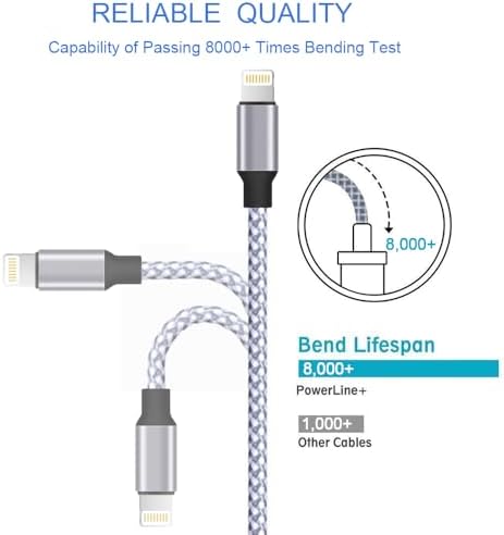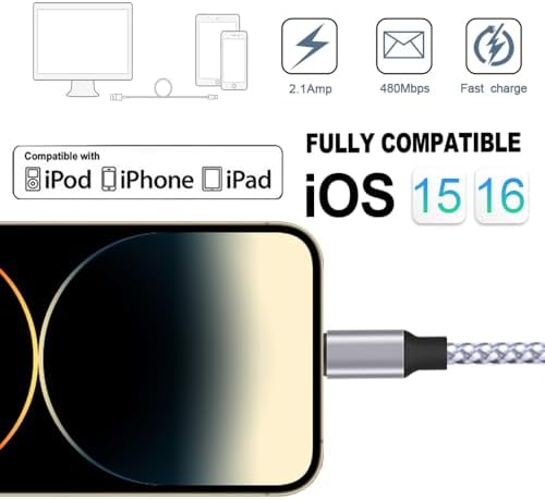 STRONG MATERIAL: iPhone cable With 8000+times bend lifespan and integrated molding process, the nylon braided jacket is super smooth and comfortable, more strong than standard iPhone charger cord. PERFECT LENGTHS: Perfect 6feet extra long iphone charger cable free up your charging time, no more being stuck to wall socket, ideal for using at home, in car and office. QUALITY COPPER WIRE: Connects to your iPhone, iPad with Connector charges/syncs by connecting the USB connector into wall charger or computer. Enjoy charge times up faster than than most standard cables. 2 N 1 FUNCTION: Great performance ensures your devices syncs and charge simultaneously with up to 480 mb/s . It syncs photos, music, videos, files with the ability to charge the device. also delivers up to 2.1A current to maximize the charging efficiency performance. UNIVERSAL COMPATIBILITY: Work with iPhone 14,13,12,11,11 Pro, 11 Pro Max, XS Max, XS, XR, X, 8 Plus, 8, 7 Plus, 7, 6S Plus, 6S, 6 Plus, 6, 5S, 5C, 5, iPad Pro, iPad Air, Air 2, iPad mini, mini 2, mini 4, iPad 4th gen ,iPod Touch 5th gen, iPod nano 7th gen and Beats Pill+