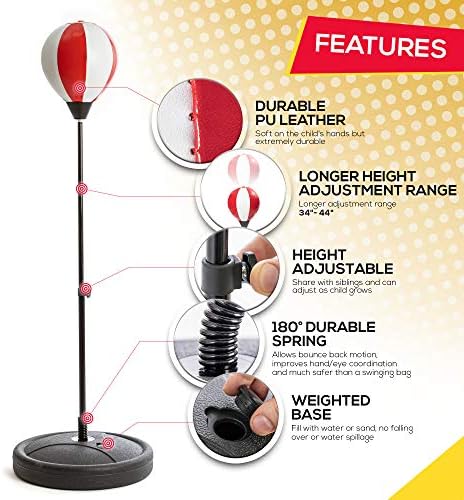 Whoobli Punching Bag for Kids Incl Boxing Gloves | 3-10 Years Old Adjustable Kids Punching Bag with Stand | Boxing Bag Set Toy for Boys & Girls (Red White); New 2024…