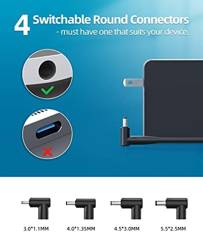 ⚡# Certified Safety # --- Certified and listed by the nationally recognized electronics safety expert UL. Only products with the top quality, workmanship & safety level in the industry can pass the extremely stringent quality tests to obtain this honorable certification. ✅# Flawless Compatibility # --- Exclusively designed switchable round connectors will fit ALL ASUS laptops of 65W, 45W, 33W with round power connectors. ?# Worry-Free Warranty # --- Full refund or replacement within 30 days of purchase if unsatisfied anytime for any reason. An additional 2 years warranty and dedicated customer support are right at your service. ?# What's in the Box # --- 1 X Power Adapter for Asus Laptop Charger Replacement, 4 X Switchable Round Connectors ?# Other Specs # --- Output: 19V 3.42A 65W (Fit for Asus laptops of 65W, 45W & 33W), Input:100-240V
