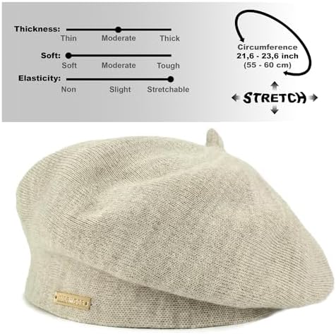 FLEECE LINED BERET - Lining make this brown beret cozy and comfy in winter or cold autumn. The long brim part can cover your forehead well FRENCH BERET - fit for coats, jackets, dresses, sweaters, and so on. Be ready for likes. This paris hat will be the perfect match to your look. You cannot go wrong with this shape UKRAINE QUALITY WOOL BERET - Braxton tan berets for women made in Ukraine. This 30% angora beret. Best materials for you - made from European yarn. One size fits most. Circumference is 55-59cm (21,6-23,2 inches) PERFECT GIFT - This winter beret - wonderful gift. Berets for women is an excellent gift for Christmas, Thanksgiving Days, Mother's Day, Family Parties and Friend's Birthday #65,611 in Clothing, Shoes & Jewelry ( ) #9 in