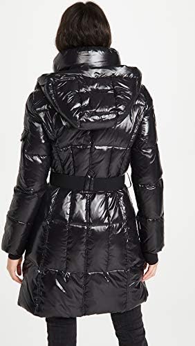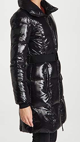 Fabric: Mid-weight, non-stretch quilted weave Fill: 80% goose down/20% feathers Coated finish, High neckline with zip-off drawstring hood, Long sleeves with knit thumbhole cuffs Two-way zip closure, Elastic belt at waist with logo buckle Zip front pockets, Zip and flap pocket at shoulder