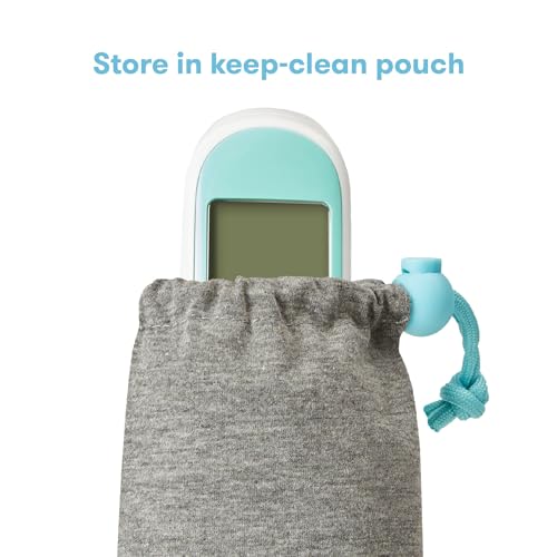 RAPID RESULTS: Obtain precise infrared temperature readings in just one second, ensuring quick and accurate assessment using the infrared thermometer. VERSATILE USAGE: This multi-use thermometer is suitable for reading temperatures in the ear and on the forehead, applicable to both children and adults. Additionally, it offers touchless temperature measurements for room or bottle temperatures. EASY TO READ: Stay informed about high temperatures through the color-coded screen and optional sound alerts, providing a user-friendly way to monitor your child's well-being. TEMPERATURE MEMORY: Our baby thermometer conveniently stores up to 40 previous temperature readings, allowing you to track changes and trends over time for a comprehensive health overview. CARRY IT ANYWHERE: Powered by batteries, this thermometer is portable and can accompany you wherever you go. It also comes with a storage pouch for safekeeping when not in use.