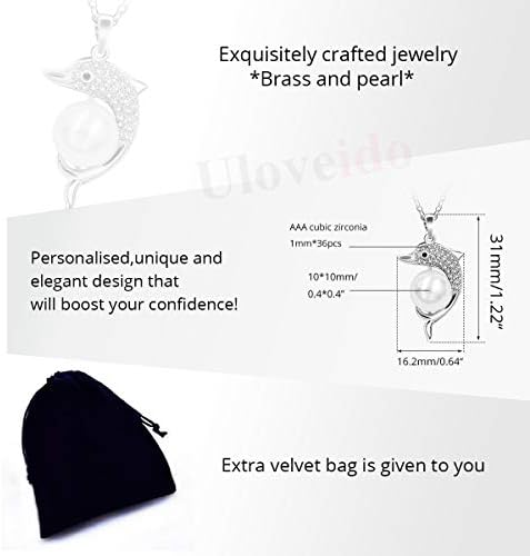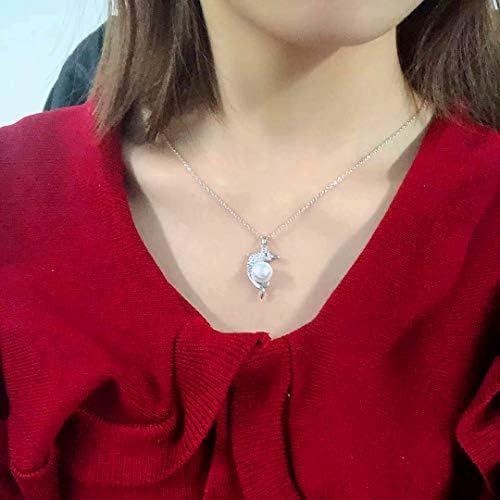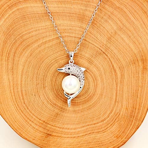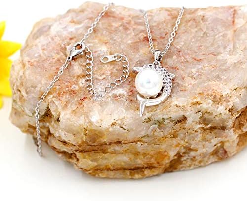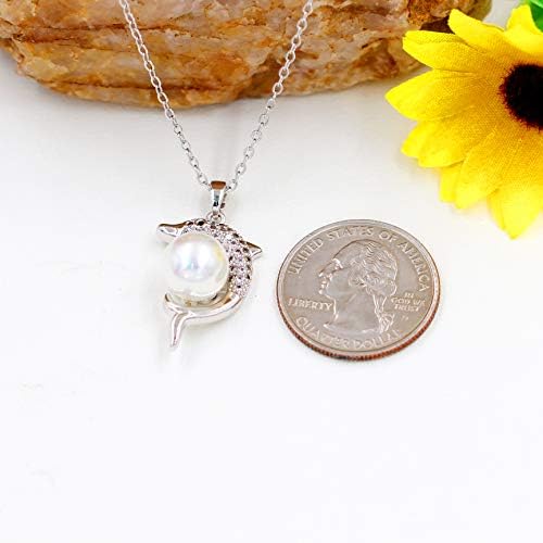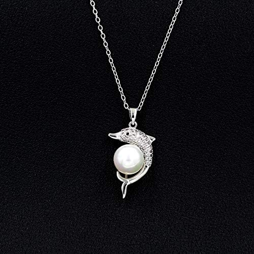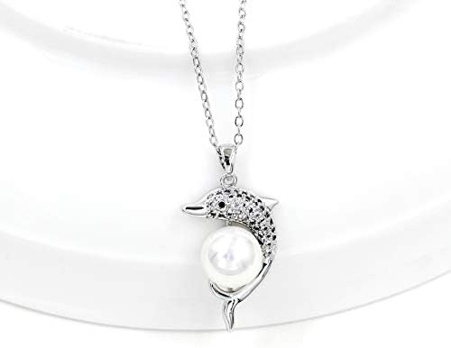 Gold & Platinum Plated Cubic Zirconia Pave Dolphin Playing Pearl Ball Pendant Necklace Y1076