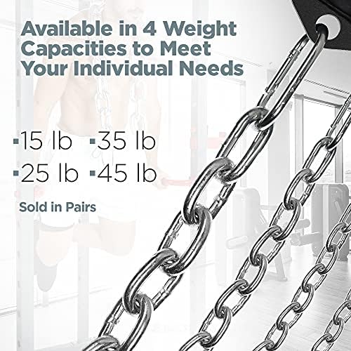High-Quality Construction: Designed to withstand your hardest workouts, LoGest’s Weight Chain Lifting are expertly crafted using heavy-duty, rust-resistant steel construction to supply reliable use and long-term durability. Versatile Use: Effectively targeting different muscle groups by attaching to a bar or draping over your shoulders, these Weight Lifting Chain are perfect for strength training, deadlifts, squats, bench presses, curls, lunges, pull-ups, dips and more. 4 Weight Capacities: Sold in pairs, these Weight Lifting Chains workout are available in four different weight capacities to meet everyone’s personal ability level. Choose among 15, 25, 35 and 45 pounds chain workout to engage in productive workout sessions at any time. Easy to Use: Each Weight Lifting Chain weight comes complete with a steel black bar collar, equipped with an L screw to secure the lock. These collars allow easy attachment to and removal from any 2-inch Olympic barbells. Effective Tools: Ideal for powerlifting, weight lifting and strength training, the bar gets heavier as the weightlifting chains with collar is lifted from the ground gradually during exercises. As such, it’s effective for targeting your back, legs, core, arms, hips and shoulders.