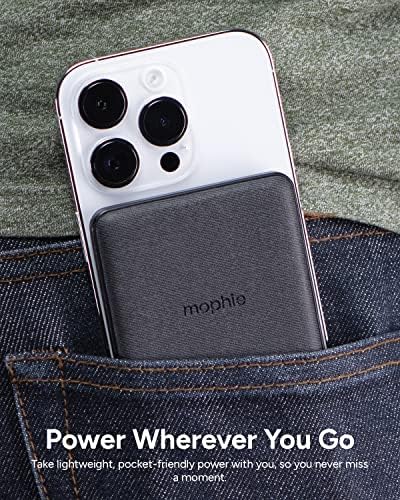 EFFICIENT MAGNETIC WIRELESS CHARGER - In a flash, give your phone a power boost with the mophie Snap plus Juice Pack Mini - a portable magnetic wireless charger featuring a 5,000 mAh powerful internal battery that offers enough power for a full charge MAGNETICALLY ACCURATE PLACEMENT - The magnetic array makes it easy to attach and remove the charger. Just attach to the back of your device and turn it on to begin charging. It ensures that you hit the charging spot while placing your phone on the charger COMPATIBLE WITH MOST DEVICES - The charger's magnetic array also works with MagSafe-enabled iPhone 13/12 models and other Qi-enabled smartphones from Apple, Samsung, and Google. Easily charge your phone on-the-go regardless of the brand or model VERSATILE USB-C PORT - Use the USB-C port to recharge the snap plus juice pack mini with a 10W wall adapter (not included) or use that same port to charge any compatible device. Includes the USB-A to USB-C charging cable. Never run out of battery again SNAP ADAPTER INCLUDED - The wireless charger comes with the Snap adapter that adds magnetic compatibility to phones that don’t have a magnetic feature like MagSafe. Attach the adapter at the back of your phone or over the protective case to begin charging