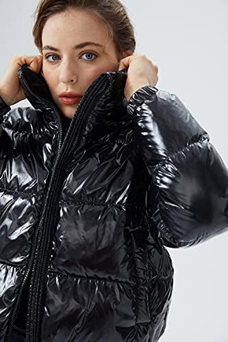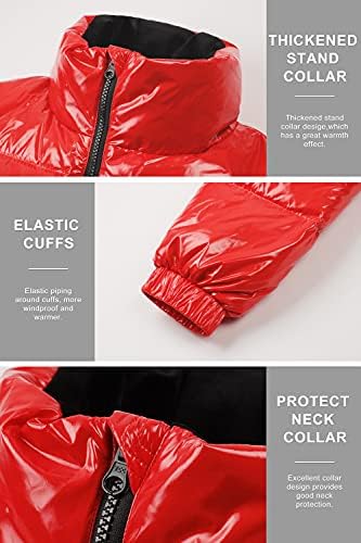 FABRIC: The puffer down coat made by glossy waterproof fabric, shell 100% nylon, lining made by 100% polyester, body/sleeve filler with 90% duck down and 10% feathers,which make this short down coat fashion and warm. FEATURE: The down jacket has ultra-short design, shelling with waterproof bright colors fabric like Red/Purple, which make this coat look more energetic and stylish.In contrast, the black inner lining is soft and skin-friendly. DETAILS: This petite short windproof down coat has plus velvet stand-collar design and branded logo on left sleeve, front with zipper closure, the elastic cuffs and hem make this coat look more puffy, also proviede a better warm effect. STYLE: This shiny short coat is perfect for daily wear, school, vacation, club, dating, party, night out, casual wear and so on. WASH CARE: Hand wash recommended separately with mild detergent and cold water, then drying in the shade, and do not bleach and iron.