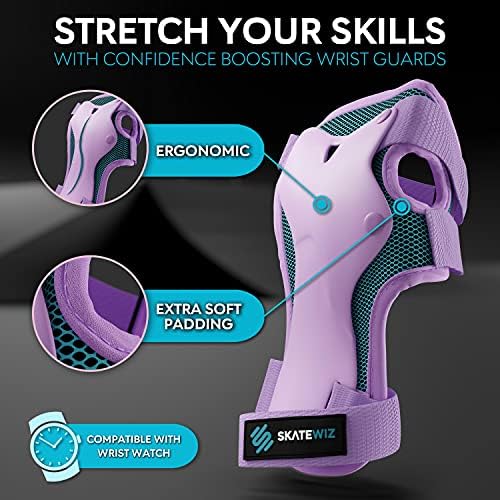 Polyester SHRED IN SAFETY – Make sure your joints are protected before you pull on your roller skates or step on your board. Cover your wrists, knees, and elbows with 6 expertly engineered pads from SKATEWIZ FIND YOUR FIT – Relish full-coverage skateboard gear that feels like an extension of your body. Adjust extra-long hook and loop straps to your perfect size setting and feel empowered, not encumbered CLIMATE NEUTRAL – Our company is climate neutral, so are our products – from manufacturing to disposal, we have offset all unavoidable emissions RIGOROUSLY DESIGNED – Armor yourself or your kid with protective gear you can trust. Your skate pad set was built to take more abuse, cover more skin, and hold up to almost any extreme athlete’s needs PADS with a PEDIGREE – Let loose and get gnarly knowing your skating pads have met CPSC, CE and CP65 standards. Enjoy impressive impact absorption, safe materials, and waste-minimizing packaging SICK SERVICE – Count on SKATEWIZ for high-performance rollerblade and skateboard accessories. Contact us anytime with questions, concerns, and stories about your sweetest grinds, stalls, and flips