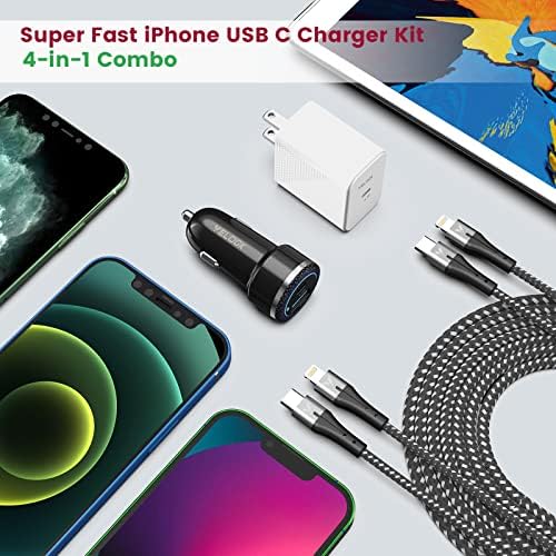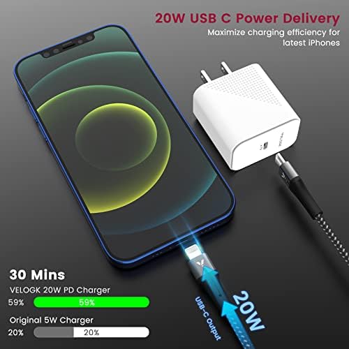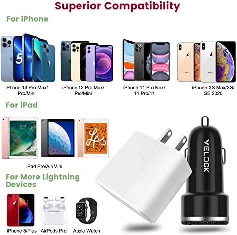 iPhone 13 14 12 Fast Charger Kit, VELOGK 20W USB C PD Wall/Car Charger Adapter for iPhone 14/13/12/Pro/Max/Mini/11/Xs Max/XR/X, iPad Pro/Air, with 2X【Apple MFi Certified】iPhone Lightning Cables(3.3ft)