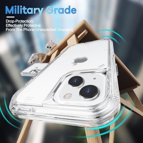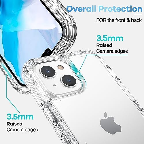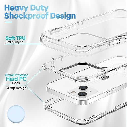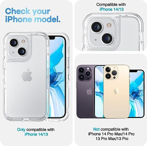 [Compatible with iPhone 14/13]Precise cutouts for speakers,charging ports,audio ports, and buttons for your convenience. [Full Body Protection]3 in 1 Armor construction, inner shell & Soft TPU outer cover shell, offer dual layer protecion, effectively prevents your iPhone 14/13 from impact and scraches.[NOTE: NO front cover/ NO 3rd part screen protector included] [Crystal Design]This clear case shows the original color of your phone,keep your iPhone 14/13 in natural look with raised lips around screen and camera, offer a better protection. [Perfect Fit]Exact cutouts for all ports and buttons.Easy to access all original function with full cover protection,charging without removing case.There are dustproof flaps on USB and ring/vibrate switch, keep dust out of your phone. [Amazon After-Sales Service]Any defective for this transparent case, please feel free to message us, we will offer you a suitable solution within 1 business day.