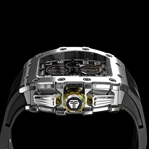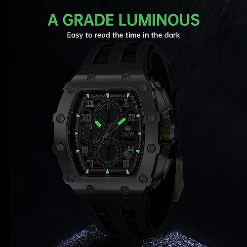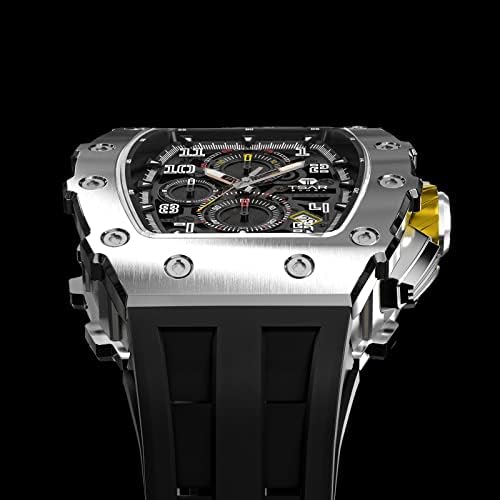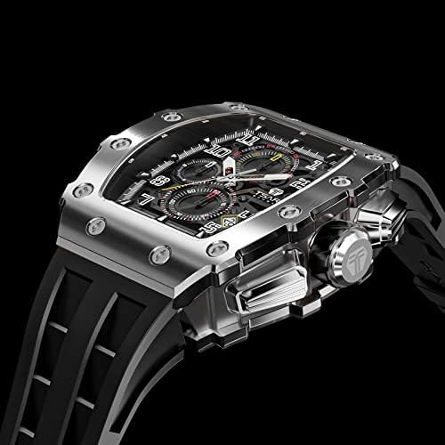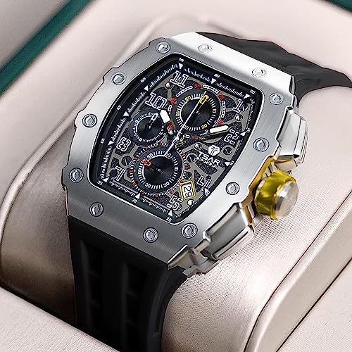 TSAR BOMBA Tonneau Mens Luxury Watch 50M Waterproof Luminous Date Chronograph Wrist Watch with Japanese Quartz Movement Sapphire Crystal Silicone Strap Fashion Sport Watches Gift for Men