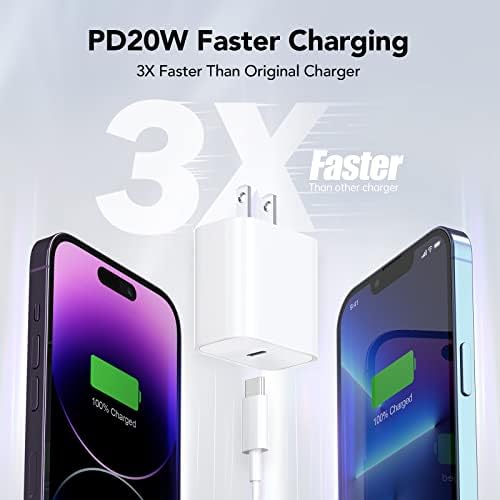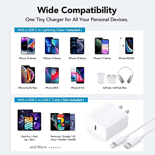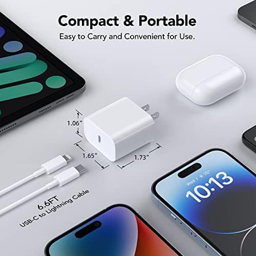 [Qwinjwin PD 3.0 Fast Charger for iPhone] iPhone Fast Charger equipped with 20W PD 3.0 USB Type C power delivery wall plug, PD 3.0 Quick-Charge USB C port provides Max 20W output power, charge your device up to 3x faster than original 5W charger,charging your iPhone 13 up to 50% in just 30 minutes, saving over 1.5hrs for you. 【Universal Compatibility】 The 20W PD phone chargers for iPhone can fast charge iPhone 14/14 plus/14 pro/14 pro max/13/13 pro/13 pro max/12/12 pro/12 pro max/12 mini/11/11 Pro/11 Pro Max/XR/XS Max/XS/X/8 Plus/8 , iPad Pro, AirPods Pro, and charge iPhone 7/7 Plus/6s/6s Plus/6/6 Plus/SE/5s/5/5c at standard speed. [Perfect Length for Your Life ] 6.6 FT usb c to Connector cable meets your daily needs. Tangle-free 6.6FT length is convenient for usage while charging and sync at home/office/travel in bed, hotel rooms, and more. [Safety Efficient Fast Charging] The Power Delivery Wall Charger for iPhone owns bulit-in multi-protection system, avoiding from over-voltage, over-charge, over-heat, etc. Charge your iPhone/iPad device fast, safely and steadily. [What You Get] 2x 6.6FT Charging Cable and 2 x USB-C Wall Charger. We offer 7x24 hours friendly customer service. If you have any questions, please feel free to contact us.