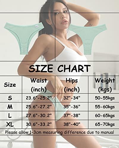 95% Cotton 5% Spandex. Soft stretch women's cotton underwear, No sagging, no binding or pilling.The panties don't dig into skin or stretch out. Cotton has fine permeability which keeps you feel comfortable. V-shaped waistband chic design, making it more sexy and stylish. Highlight the slender curve of the waist and make you look slimmer. Comfort rib stretch your body visually. The stretchy design of ladies underwear panties makes it very great as a long-term wearing for the process of yoga, running, squats and other workouts. Would be great for legging, jeans, dresses, skirt,hiking and formal events. No slipping and no riding up. Machine Washable with laundry bag. Do not high temperature drying in order to extended service life. There is from S to XL SIZE with women bikini underwear. Womens sports underwear provides different colors, different combinations, give you a different color to everyday life. UP to 8 colors bikini panties available. VALUE PACK: Get more for your money with our convenient 10-piece pack. Each pack includes ten pairs of high-quality panties, ensuring you always have a fresh, comfortable pair to wear. Experience the most comfortable and stylish products available. #11,742 in Clothing, Shoes & Jewelry ( ) #134 in