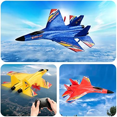 RC Airplane 2CH RC Plane Ready to Fly 2.4GHz Remote Control Plane SU35 RC Jet Easy to Fly Airplane Toys for Boys Gift for Kids Beginners with Night Lights USB Charging(Yellow