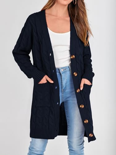 Material:Made of soft and lightweight knit fabric, this long sweaters for women is the perfect addition to your fall and winter wardrobe.Stay cozy and stylish with our womens sweaters cardigan. S=US 4-6, M=US 8-10, L=US 12-14, XL=US 16. Features:Long cardigans for women,chunky cardigans for women,sweater coats for women long,womens cardigan sweaters with pockets,cable knit cardigan women,fall cardigans for women 2023,button down sweater cardigan,open front cardigans,womens winter cardigan,open front outerwear,chunky knitwear Design:With open front design and button-down closure,this long cardigan sweaters for women offers a versatile and effortless look that can be easily dressed up or down for any occasion.It features two side pockets, providing a convenient place to store your essentials. Easy Match:This chunky cardigan is a must-have for fall and winter.Its lightweight yet warm construction makes it perfect for layering and adding a touch of cozy sophistication to any outfit.Dress it up with a pair of jeans or wear it over a dress for a more refined look. Occasions:This casual style long sleeve cardigan allows to create various looks for different occasions. Whether you're attending a casual gathering or a special event, this long sweater cardigan is your go-to outerwear. #54,127 in Clothing, Shoes & Jewelry ( ) #350 in