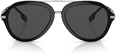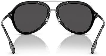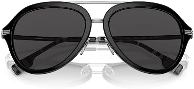 BURBERRY JUDE BE 4377 300187 Black Metal Aviator Sunglasses Grey Lens
