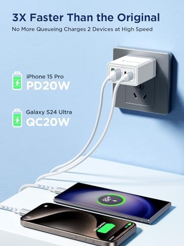 USB C Charger Block, 40W 4-Port Fast Charger 20W Type C Charging Block 3.1A USB Wall Charger Dual Port PD+QC Charging Cube for iPhone 15 14 13 12 11 Pro Max XS, iPad, Samsung Phone, Tablet