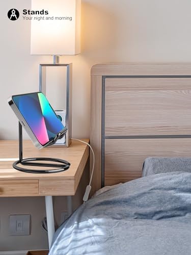 Wide Compatibility: This cell phone stand is compatible with all 4-6.5 inches smartphones in phone cases, like iPhone 14, 14 Pro,iPhone 13 Mini, iPhone 13, iPhone 13 Pro,12, 11 Pro XS XR. Unique Design: This phone stand for desk has excellent stability and play a good role in your office, kitchen, nightstand, dining table. No bent & tangling & tip over worries when using while charging. Sturdy & High Appearance: The cell phone holder is made of premium metal,it stays firmly in place,hold your phone steadily,no worry any wobble at all. Ergonomic Viewing Angle: The phone stand holder is in accordance with ergonomic design. Providing you comfortable viewing angle which helps to fix your posture and reduce neck & back strain. Service Satisfaction: If you are not satisfied with our Cell Phone Stand Holder, please feel free to contact us, we will reply within 24 hours and provide you with a satisfactory solution.
