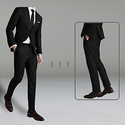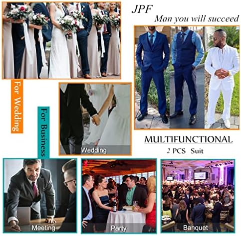 JPF Men's 2 Piece Slim Fit Suit Set, Two Button Solid Jacket Pants with Tie Suits for Men