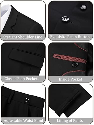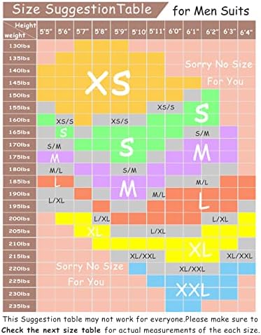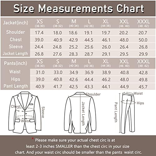 ACTUALLY 3 PIECES! -- In addition to JACKET and PANTS, we also include a high-quality Neck Tie ($10 dollars retail)! The 3-piece set gives you more options on wearing according to different weathers and occasions. SUPERIOR MATERIAL -- Outer is 80% Polyester and 20% Viscose materia, it is comfortable, breathable, softer, smoother, easier to wash and keep the shape. Inner is polyester fiber , it is breathe freely and absorb sweat. MODERN STYLE -- Our formal/casual suit set is with slim-fitting cut from 3D draping. It will be a little tighter than regular suits but easier to present your perfect figure. You will become the focus of the occasion throughout the day after you wearing it. OCCASIONS -- Easy to match with any formal/business tuxedo shirt, suitable for multiple occasions, such as wedding, party, business, graduation, date, work, meeting, prom, banquet and homecoming. It is also a good choice as a gift for your friend, father, brother and son. ABOUT SIZE: Please only look at our size measurements chart in image 2 and 3.