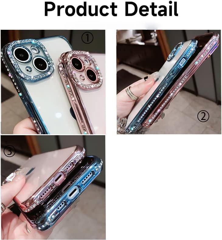 Casechics Compatible with iPhone Case,Luxury Glitter Bling Sparkly Diamond Electro Plated Frame Edge Border Full Body Protective Clear Soft Shockproof Cover Phone Case (Pink,iPhone 13)